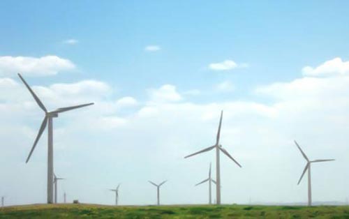 上图为装有南高齿FD1660F 型1.5MW风电齿轮箱的风力发电机组在内蒙古乌拉特风场