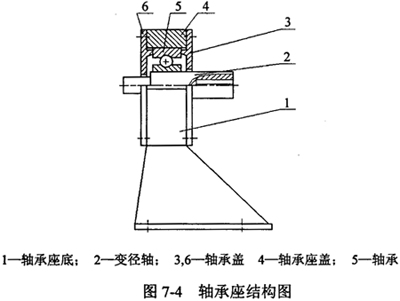 轴承座是作者为解决试验中测试用输入转矩传感器轴不允许承受较大的径向作用力这一实际问题而专门设计的。其一端联轴在输入转矩转速传感器轴上,另一端安装同步传动的输入小同步带轮,如图7-4所示。