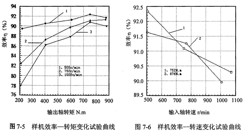 需要加以说明的一点是,由于试验台控制柜的条件限制,在高输入转速时,输出转矩上不去;在高输出转矩时,输入转速上不去,只能对所得的上述传动效率曲线进行分析。