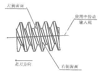 车蜗杆时由于螺旋升角的影响,轮齿右侧齿面切削条件好,左侧切削条件差。并且车左侧齿面时车刀所受轴向切削力与走刀方向相同(见图2),所以切削不平稳,齿形误差比右侧大。再如果滚蜗轮时滚刀杆的轴承间隙大,加工时产生让刀,这样蜗轮蜗杆啮合时蜗轮轮齿一侧接触好,一侧接触差。因此在运转初期建议旋转方向:从输入端看蜗杆顺时针方向旋转,蜗轮旋转方向与加工时相同(见图1),反方向旋转只能短时使用。