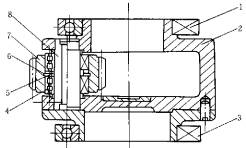 1—轴承 2—转架 3—轴承 4—轴承 5—内隔环 6—外隔环 7—行星轮 8—行星轮轴