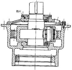 b)后机盖调装 见图10,输出行星架的轴承轴向间隙通过修磨隔环(如图)达到图样要求。