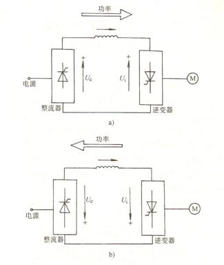 2.采用电流型变频器时 对于电流型变频器,再生时直流电流方向不变,而直流电压的方向反向,所以整流器部分不需要可逆方式,用不可逆整流器即可。图14示出电流型变频器的直流电流与直流电压的关系。