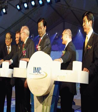 巴菲特同IMC集团及大连市领导为IMC大连新工厂开业庆典启动按钮 |