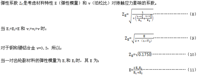 >>锥齿轮承载能力计算方法第 2 部分:齿面接触疲劳(点蚀)强度计算弹性系数ZE(GB/T10062.2-2003)