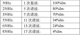 根据谐波分析,在变频器电路中不含3次及3的整数倍谐波分量。在三相对称系统中,3的整数倍谐波可自行消除,可以不考虑,亦无偶次谐波。其各次谐波峰值可达到的百分比如下表所示: