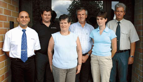 家族业务:左起,山高刀具公司产品专家 Lahoucine Akechtabou、公司经理 Stefaan Vancoillie、行政主管 Ingrid Vancoillie、公司持有者 José Vancoillie、财务主管 Isabelle Vancoillie 和山高刀具公司地区经理 Dirk Van Landuyt。
