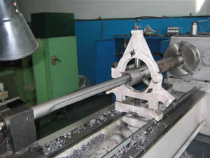 刀具的安装可根据工件的实际情况选择方式:机床转速和最小进给量都能满足加工要求时,旋转夹具锥柄直接安装在机床主轴锥孔内,刀具安装在旋转夹具,机床主轴通过旋转夹具带动刀具作旋转运动,进给运动由大托板提供。