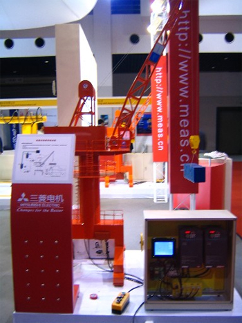 在2008年4月举行的“第二届中国(上海)国际起重机械及配件展览会”上,三菱电机首次向众人展示了起重行业的综合解决方案。6套色彩鲜艳并按真实起重机等比缩小的模型,演示着6项各不相同的控制功能,吸引了观众的目光。功能简介如下: