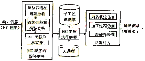 本文设计的数控车削仿真系统既可以对手工编制的单机数控车削程序进行仿真,也可以作为CAD/CAPP/CAM集成制造系统中的一个子系统,对集成制造系统自动产生的数控车削程序进行仿真。该系统可以完成对子程序的处理,允许运动坐标的续效代码和注释行的存在,并且支持多种数控代码格式,是一个通用的数控车削NC 程序仿真系统,其工作流程如图1所示。
