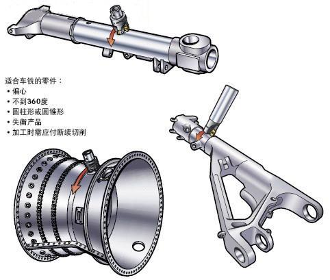 许多原本很难制造、需要在不同设置和机器上采用数种不同加工工序的零件,采用车铣工艺就能以高效率制造出来。当零件形状不对称,或由于平面、型腔及障碍物等原因,零件表面的圆度达不到360°时,这种工艺便显示出其优越性。