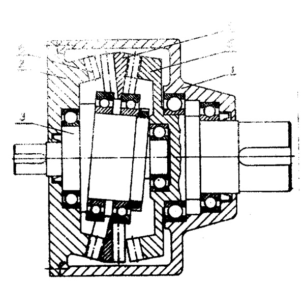 锥齿轮波导减速机,属于工程机械中采用的大速比减速机,目的在克服以往该类减速机的缺点,使之成为一种能广泛使用的大速比、大承载能力、较高效率的减速机.其主要特征为:1.波动齿轮用一对滚动轴承架持在输入轴上.2.所采用的锥齿轮具有多齿啮合,高强度的特点.3.输出机构为一对同样齿廓的锥齿轮.用途:本发明可广泛用于各种机械之中,尤其适合于工况恶劣,超载严重的煤炭、冶金、矿山、兵器工业等大功率,大扭矩,大速比场合.