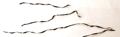 生成原理:钻孔开始时外刃与圆弧刃切下连成一体的块状屑,(“6”字形屑的头部)卷到一定长度后,沿圆弧刃方向的附加变形,使切屑分裂,开始分屑,外刃与圆弧刃切屑分别排出。外刃一段为带状屑,(“6”字形屑的尾巴),圆弧刃切屑为块状屑。“6”字形屑到达一定长度后,切屑在钻槽中碰到上边的槽壁,切屑受到外加的弯矩而折断,其长度与螺旋槽二分之一导程基本一致。若切屑未碰到钻槽,排出到空间一定长度后,也可随着钻头的旋转甩断。其长度约为60~100mm左右。