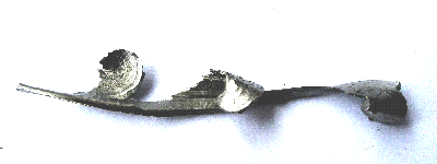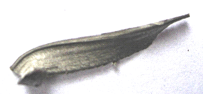 生成原理:在生成“6”字形屑的条件下,若圆弧槽略深,外刃与圆弧刃交点处虽出现时连时分的排屑状态,但以分屑为主。外刃与圆弧刃切屑连成一体的时间很短,出现一段段的”花”状的连体屑。