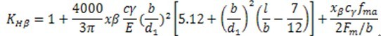 式中:KHβ——接触强度计算的齿向载荷分布系数,见6.3.2或6.3.3;