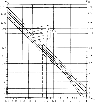 图6 弯曲强度计算的齿向载荷分布系数KFβ