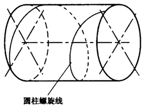动点沿圆柱面上的一条母线作等速移动,而该母线又绕圆柱面的轴线作等角速度旋转运动时,动点在此圆柱面上的运动轨迹(见图3)。