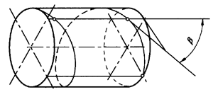 在圆柱面上,圆柱螺旋线的切线与通过切点的圆柱面直母线之间所夹的角(规定它大于等于0°而小于90°)称为螺旋角。在分度圆柱上的螺旋角称为分度圆螺旋角,以β表示(见图4),在基圆柱上的螺旋角称为基圆螺旋角,以βb表示。