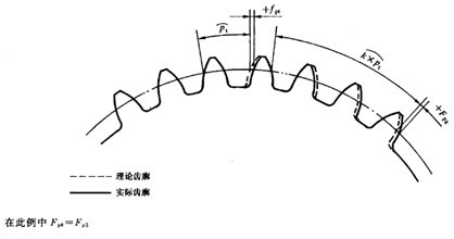 任意k个齿距的实际弧长与理论弧长的代数差(见图1)。理论上它等于这k个齿距的各单个齿距偏差的代数和。