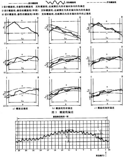 在计值范围内,包容实际螺旋线迹线的两条与平均螺旋线迹线完全相同的曲线间的距离,且两条曲线与平均螺旋线迹线的距离为常数(见图3b)。