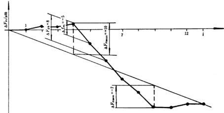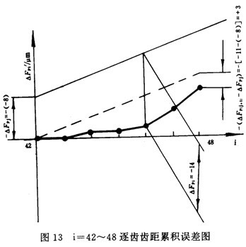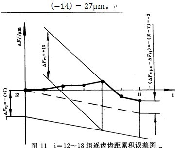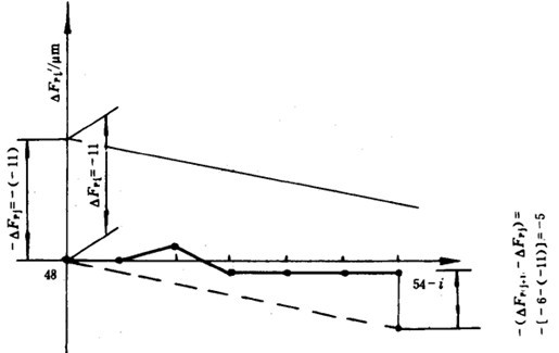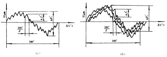 按16.1.2所述原理,测出截面整体误差曲线或全齿宽整体误差曲线,在该曲线上按误差定义取出