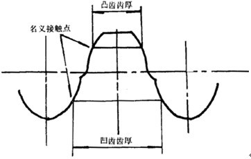 在基本齿廓上,凸齿或凹齿左右齿面上名义接触点处的齿厚。