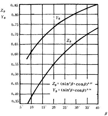 螺旋角系数是考虑螺旋角影响齿面相对曲率半径,从面影响轮齿应力的系数。其值可按图5查取,或按图中公式计算。