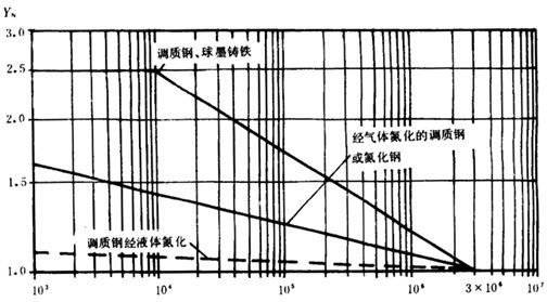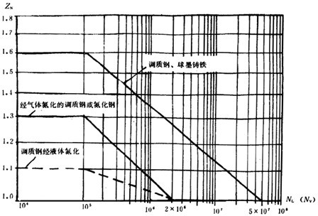 图12当调质钢和球墨铸铁的应力循环次数NL或NV≥5×107时,ZN=1;氮化钢的应力循环次数NL或NV≥2×106时,ZN=1。图13的应力循环次数NL或NV≥3×106时,YN=1。