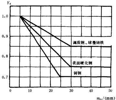 尺寸系数是考虑实际齿轮模数大于试验齿轮模数而使材料强度降低的尺寸效应。其值可按图16查取。