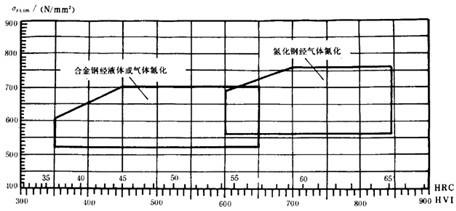 氮化钢齿轮齿芯部硬度≥300HBS。