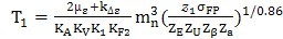 式(B1)与正文的公式(3)等效,其符号意义及取值同公式(3)。σHP应取大轮或小轮的小值代入式(B1)。对于人字齿轮,( )按单侧齿宽计,算得的T1值为单侧齿宽的名义转矩。