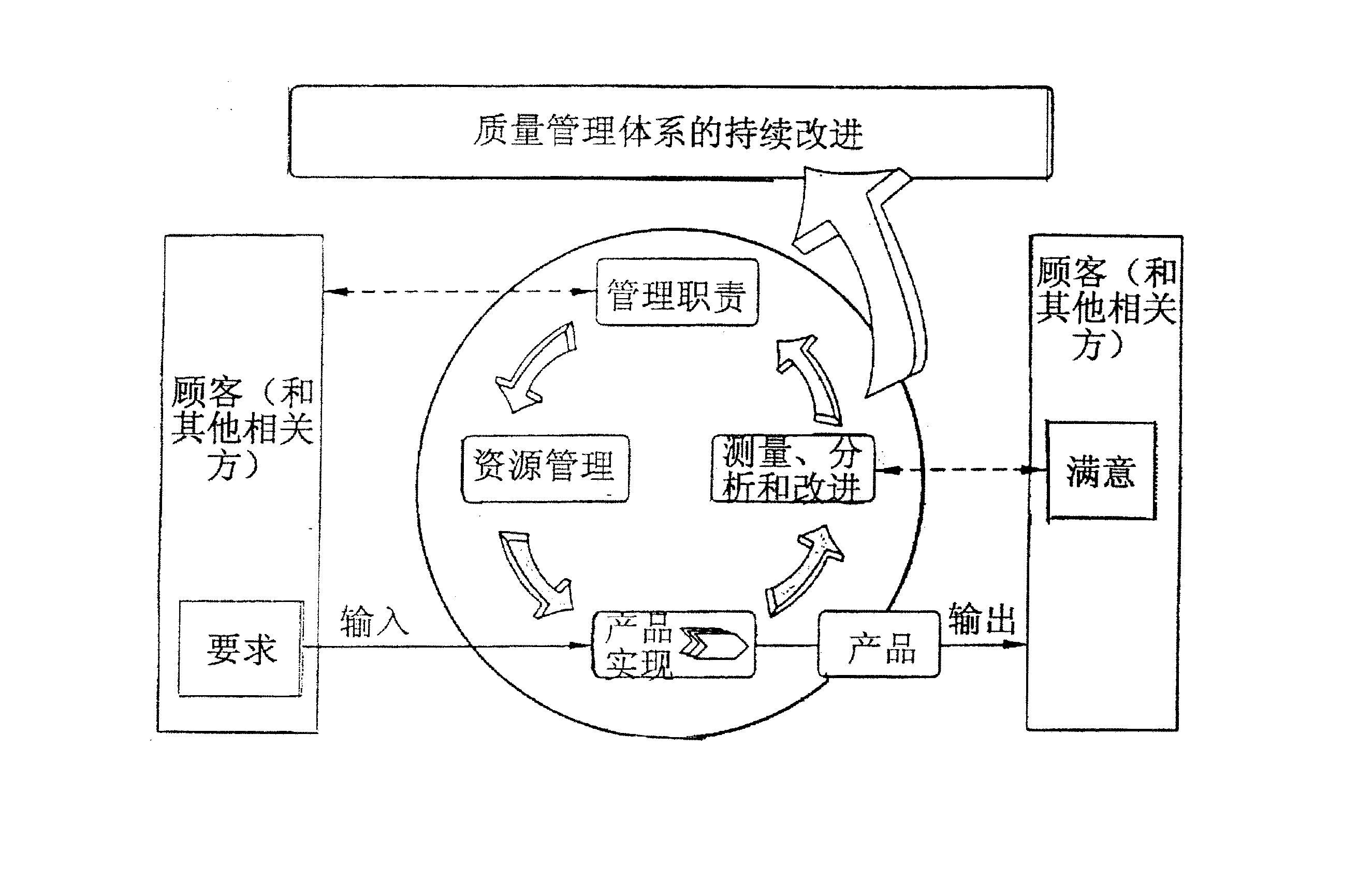 GB/T19000族标准表述的,以过程为基础的质量管理体系如图1所示。该图表明在向组织提供输入方面相关方起重要作用。监视相关方满意程度需要评价有关相关方感受的信