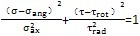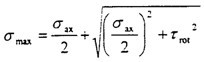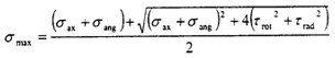 此时的应力情况属于三向应力状态,所以其分析过程和径向不对中900以及2700以情况相似,只是这里还有了附加的轴向拉应力和附加的角向应力,将各个应力值σxx=σax+σang,σyy=0,σzz=0,τxy=τrot,τyz=0,τzx=τrad分别代入式(4-29)(4-30)(4-31)中,可以得到