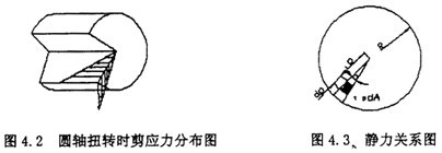 这表明,横截面上任一点的剪应力 P与该点到原新的距离P成正比。因为YP发生于垂直于半径的平面内,所以YP也与半径垂直。如果注意到剪应力互等定理,则在纵向截面和模截面上,沿半径剪应力的分布如图4.2所示
