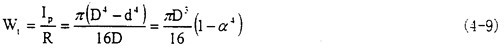 ,导出的公式中引进了截面极惯性矩和抗扭截面系数,在空心轴的情况下有