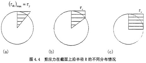 此时剪应力在截面上沿半径R的分布情况见如图4.4(b)所示。