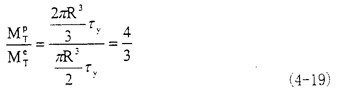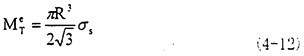 (2)当圆轴整个截面都进入塑性状态,如图4.4(c),此时的扭矩就是圆轴的塑性极限