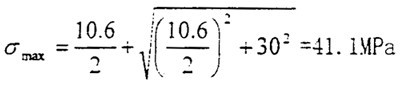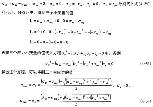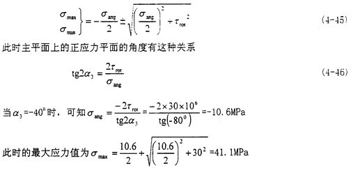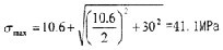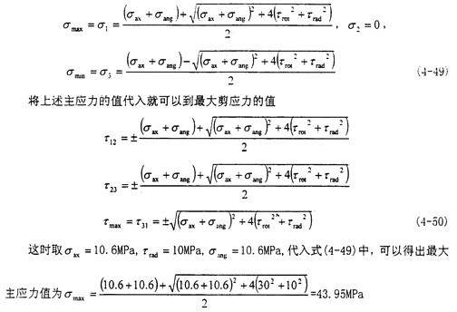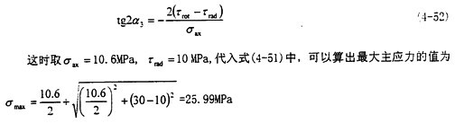 这时取σax=10.6MPa,τrad=10MPa,代入式(4-56)中,可以得出最大主应力值为