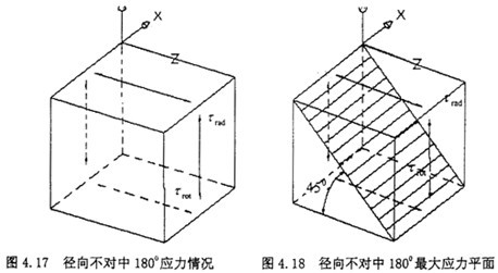 由图示可知,此时单元体的受力其实是属于纯剪切状态,只是此时的剪切应力为τrad与τrot的方向相同,而在1800时方向相反,所以有