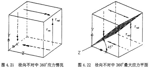 由图示可知,此时单元体的受力其实是属于纯剪切状态,只是此时的剪切应力为τrad与τrot的叠加。此时剪应力τrad与τrot的方向相反。所在最大应力有所抵消。