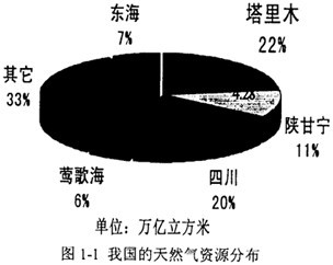 3。此外,从图1-1可以看到,陕西、四川、青海等地的天然气储量也都十分可观,气田分布的西倾状况比较明显。