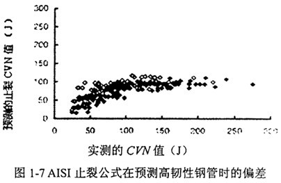 Bartell。两步分析基于裂纹扩展的减压波速判据,提出了行之有效的数学解法,实现了直接由管道工作参数推断出止裂所需的临界CVN冲击韧性。后来又总结了一系列简便的经验公式。在当时的条件下,全尺寸爆破实验中所用的管线钢CVN冲击韧性一般不超过100J,CVN冲击韧性足以描述不同钢种的抗断裂性能,双曲线模型和经验模式都与全尺寸爆破实验的结果吻合得很好。