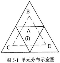 以二维情况为例,计算图5-1中A点梯度可选C→B→D→C作为积分路径,但为了保证积分的精度,最好使积分路径构成的封闭体形心与计算点重合,或至少比较接近。