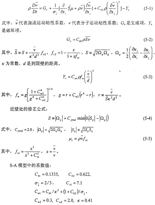 S-A湍流模型是Spalart和Allmaras在1992年提出的一方程湍流模型,具体描述如下:
