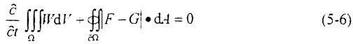 Ω是控制体边界面,W是求解变量,F是无粘通量,G是粘性通量。