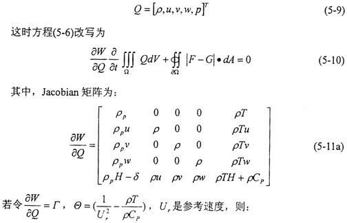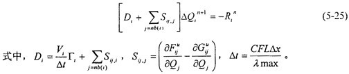 方程(5-24)可以采用显式或隐式的方法进行求解。但是由于受时间步长的限制,采用显式的R-K时间推进方法需要迭代的步数较多,计算很不经济,因此本文采用了Gauss-Seidel迭代隐式求解的方法。