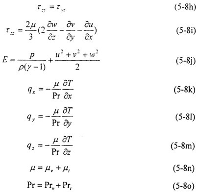 其中μv是分子粘性系数,μt是湍流粘性系数,Prv是分子普朗特数,Prt是湍流普朗特数。