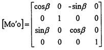 于是动坐标系O″X″Y″Z″与定坐标系OXYZ之间的四阶变换矩阵[Moo″]为: