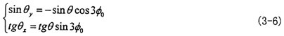 由式(3-1o)中的(1)、(2)两式,消去x″,即可求出输入角 同输出角 的