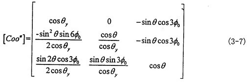 由式(3-6)可知|θy|<θ,|θx|<θ一般来说θ值非常小,则θy和θx则更小。到此方向余弦矩阵[Coo″]的所有项均可求出。其具体的形式如下(为简化书写将θy作为已知参数代入):